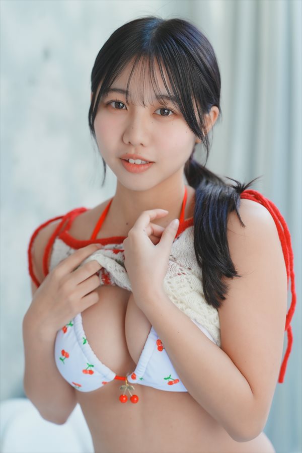 | 幼顔の可愛さに反して、なんとも立派なバストですね。Fカップの形も良い美巨乳・・・普段はダボダボの服装が多くて(周りからも)自分でも、この胸が実は「大きい方だ」とは気づいていなかったらしいのです。 |